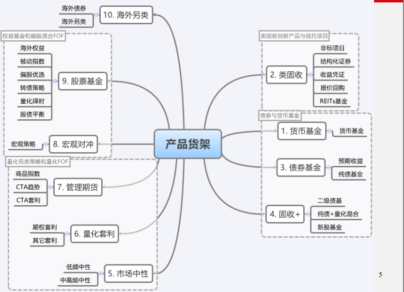 产品:类固收、货币债券、股票指数、另类商品、境外股票、杠杆。