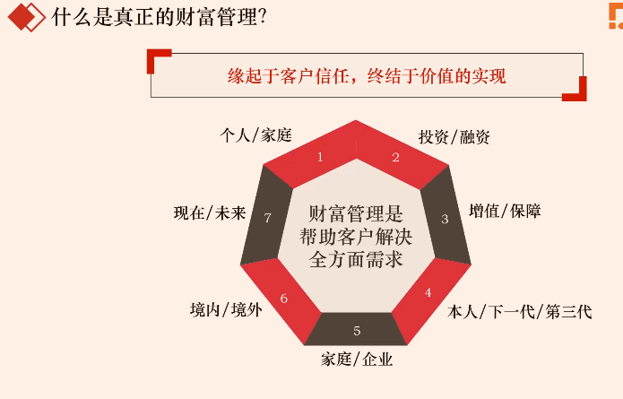 我们的投资顾问需要掌握7技能:1.时间管理;2.客群经验;3.营销技巧;4.专业能力;5.复杂产品销售能力;6.运用工具;7.资产配置。